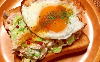 2017.12.19(火) おはようございます 今朝はパン レンチンキャベツのツナマヨトーストに目玉焼きをON! カレー粉を少々振って💕 目玉焼きは半熟でーー 🍞🍞 …
