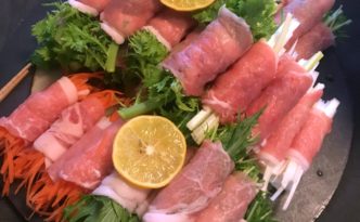 引き続き、さな亭新年会メニュー ☆野菜巻きしゃぶしゃぶ☆ 水菜、白ねぎ、人参、わさび菜を豚肉でくるくる巻いて、鰹と昆布でしっかりだしを取った鍋つゆでいただく、さな亭人気のお鍋です。大根おろしとねぎも必須アイテム! ☆マグ …